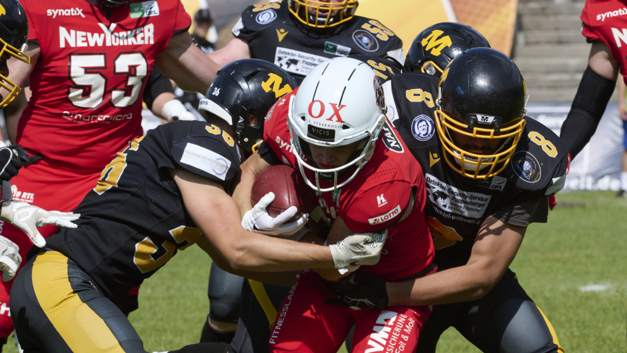 Knapper als von den meisten erwartet verlief die Partie der Munich Cowboys gegen die New Yorker Lions aus Braunschweig. Dabei starteten die Gäste trotz frühem verletzungsbedingten Ausfall ihres Quarterbacks Kare Lyles stärker. Loan Kuci und Hendrik Schambacher teilten sich…