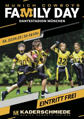 Die Munich Cowboys feiern am kommenden Samstag, 22. April ab 10:00 Uhr im Münchener Dantestadion ihren Munich Cowboys Family Day. Hierzu möchten wir alle Freunde, Fans und Mitglieder herzlich einladen.