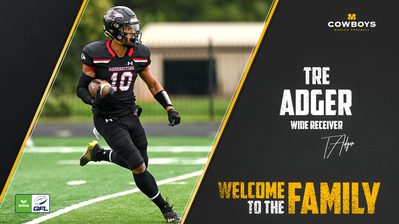 Mit Tre Adger verpflichten die Munich Cowboys einen weiteren Wide Receiver aus dem Mutterland des American Football. Der 23-jährige Passempfänger vom Benedictine College (NAIA) besticht vor allem durch seine Geschwindigkeit trotz seiner Größe von 1m88. Neben Lorenzo Thompson wird…