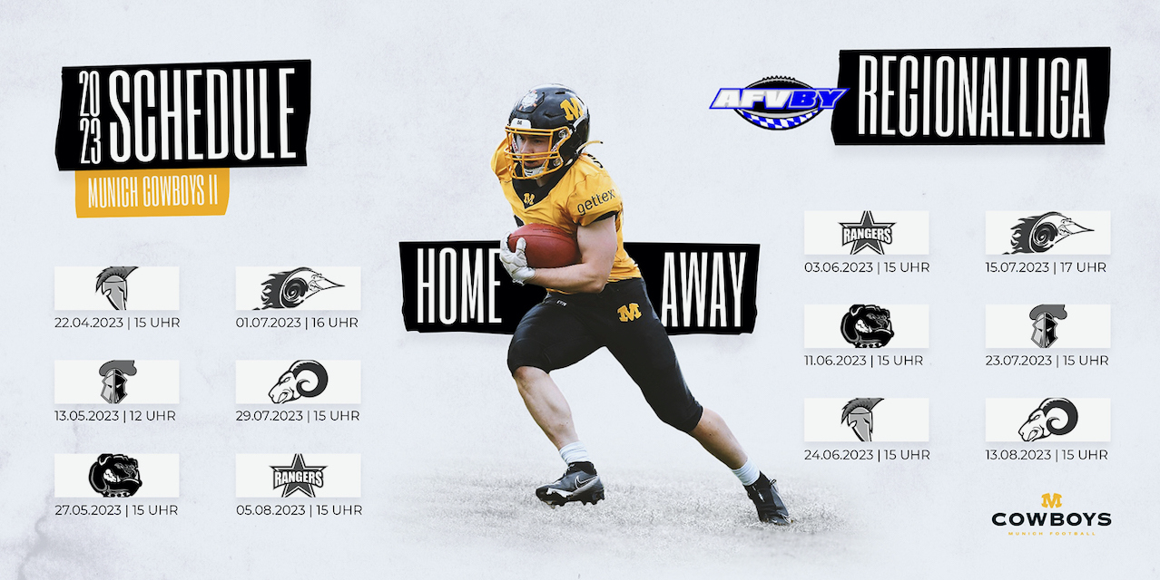Auch die Munich Cowboys II starten 2023 durch. In der Regionalliga warten starke Gegner auf das Münchener Team. Um Punkte wird gekämpft gegen die Neu-Ulm Spartans, Franken Knights, Amberg Mad Bulldogs, München Rangers, Landsberg X-PRESS und die Nürnberg Rams.