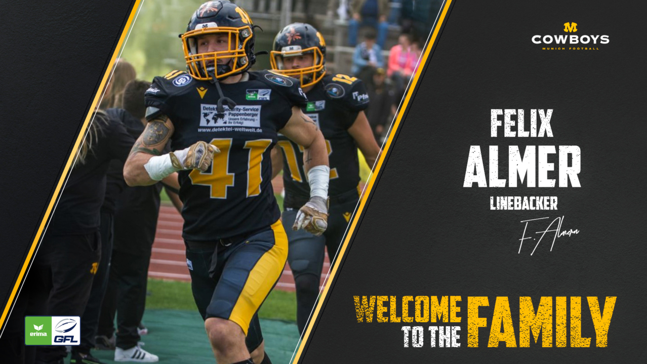Er gehört zu den ‚local heroes‘. Linebacker Felix Almer wird auch 2023 die Farben der Munich Cowboys in der Erima German Football League tragen.