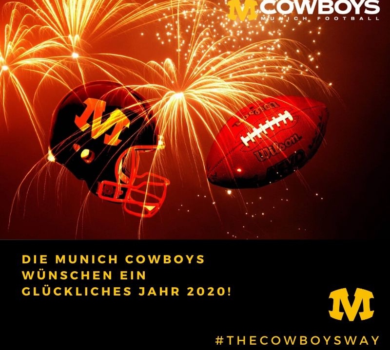 Die Munich Cowboys wünschen einen guten Rutsch und ein glückliches und friedliches Jahr 2020! Wir danken für die Unterstützung und freuen uns auf ein erfolgreiches neues Jahr gemeinsam mit Euch.