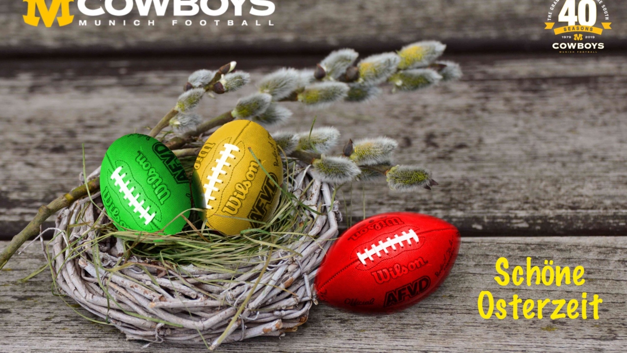 Die Munich Cowboys wünschen allen Freunden, Partnern und Sponsoren, Fans und Unterstützern schöne Ostertage. Wir freuen uns auf die anstehende Saison und drücken unseren Teams die Daumen für die kommenden Aufgaben. Auf geht's Cowboys!