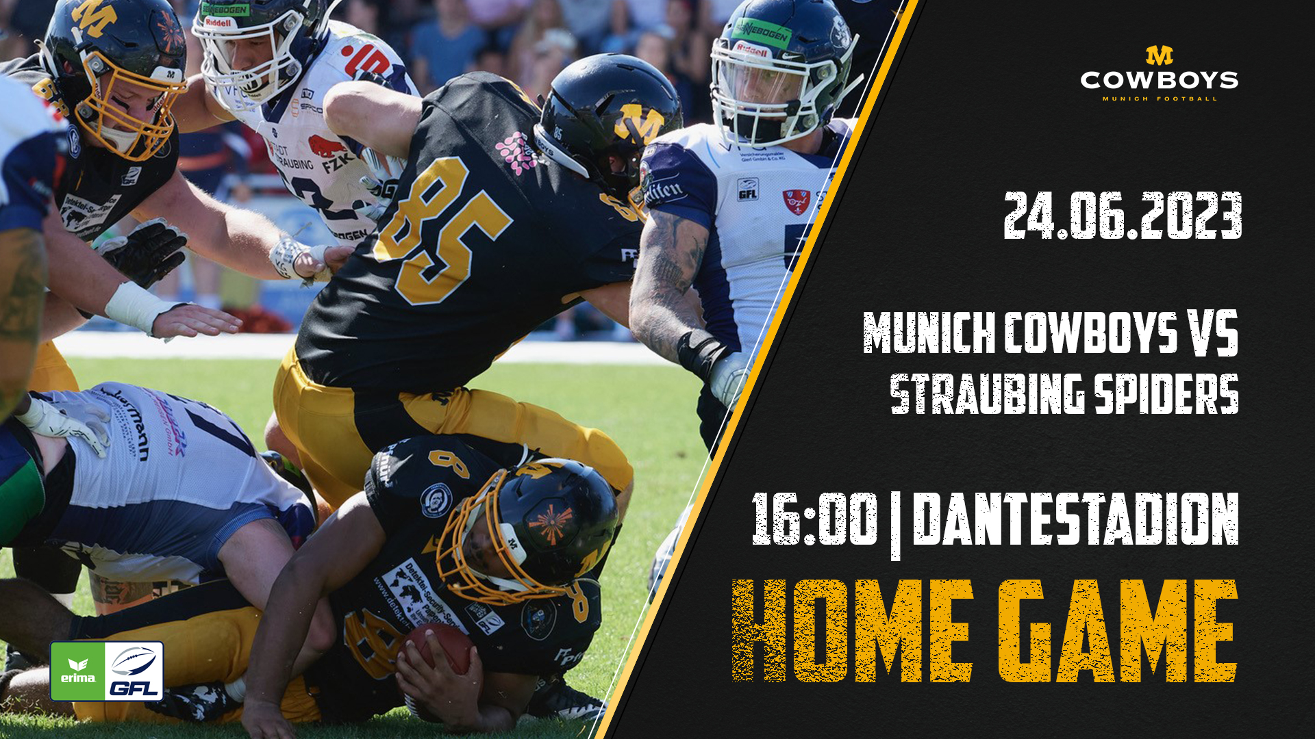 Es wird heiß in Bayern. Am kommenden Samstag, 24. Juni, treffen die Munich Cowboys in der ERIMA German Football League auf die Straubing Spiders. Die Niederbayern haben in den letzten Jahren eine wahre Erfolgsgeschichte geschrieben, die sie in der vergangenen Spielzeit als Aufsteiger in die höchste Liga bis in das Playoff-Viertelfinale geführt hat.