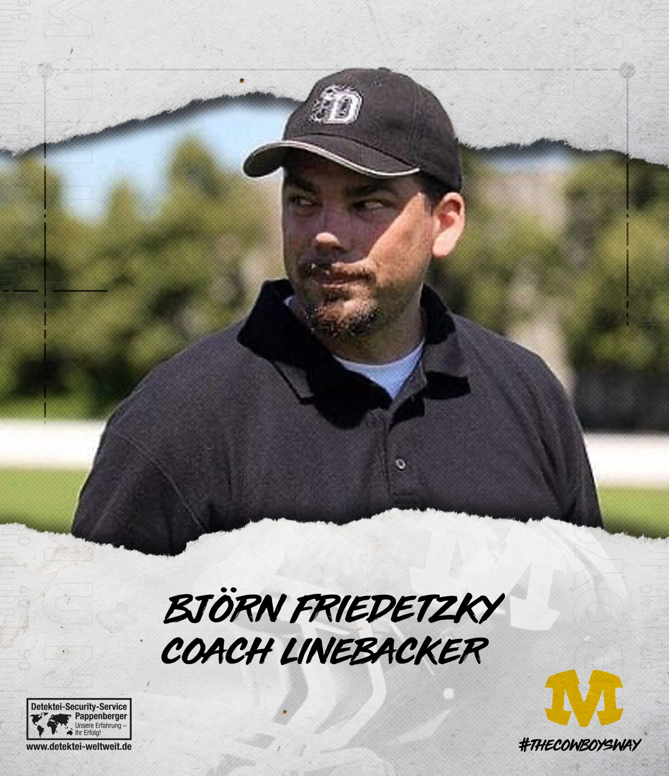 Mit Björn Friedetzky kommt ein Trainer zu den Munich Cowboys, der seit 1988 bereits im American Football unterwegs ist. Bis 1992 spielte er als Safety und Wide Receiver in der Jugend und beim Herrenteam der München Rangers. Nach zwei Jahren bei den Neufahrn Cardinals spielte er von 1996 bis 1999 in Mexico (Mexico Division I). Zurück in Deutschland lief er 2000 bis 2002 für die Starnberg Argonauts auf. 2004 bis 2007 war er dann Linebacker der Erding Bulls. Von 2008 bis 2011 spielte er für die Ingolstadt Dukes.