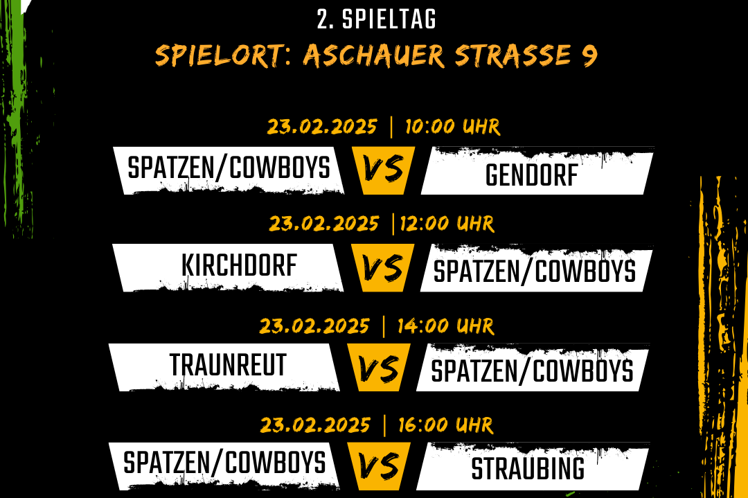 Die Spielgemeinschaft der U16 der Munich Cowboys und der Munich Spatzen, richtet am 23.02. ihr Heimturnier an der Aschauer Straße 9 in München aus. Mit vier Siegen ist man für das Finalturnier Ende März in Erding qualifiziert.