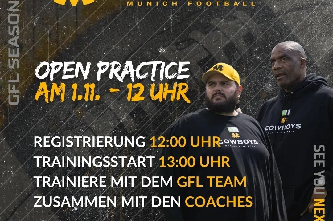 Die Munich Cowboys starten in die Saison 2026. Zu einem zweiten Try Out laden wir alle interessierten Spieler am 7. Februar auf unser Trainingsgelände an der Görzer Straße 55 in München ein.