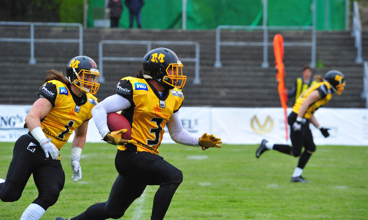 Zu Beginn sah es noch gut aus. So gingen die Munich Cowboys im zweiten Quarter sogar mit 10:7 durch ein Field Goal von Kicker Robert Werner und einen 4-yards-Lauf von Runningback Fabien Gärtner in Führung. Allerdings punkteten ab da…