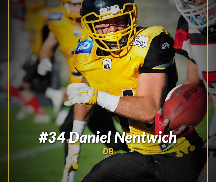 Mit Daniel Nentwich werden die Munich Cowboys auch 2017 einen erfahrenen Leistungsträger in der Defense dabei haben. Dabei kann der wendige Defensive Back auf seine Spielübersicht und athletischen Fähigkeiten vertrauen.