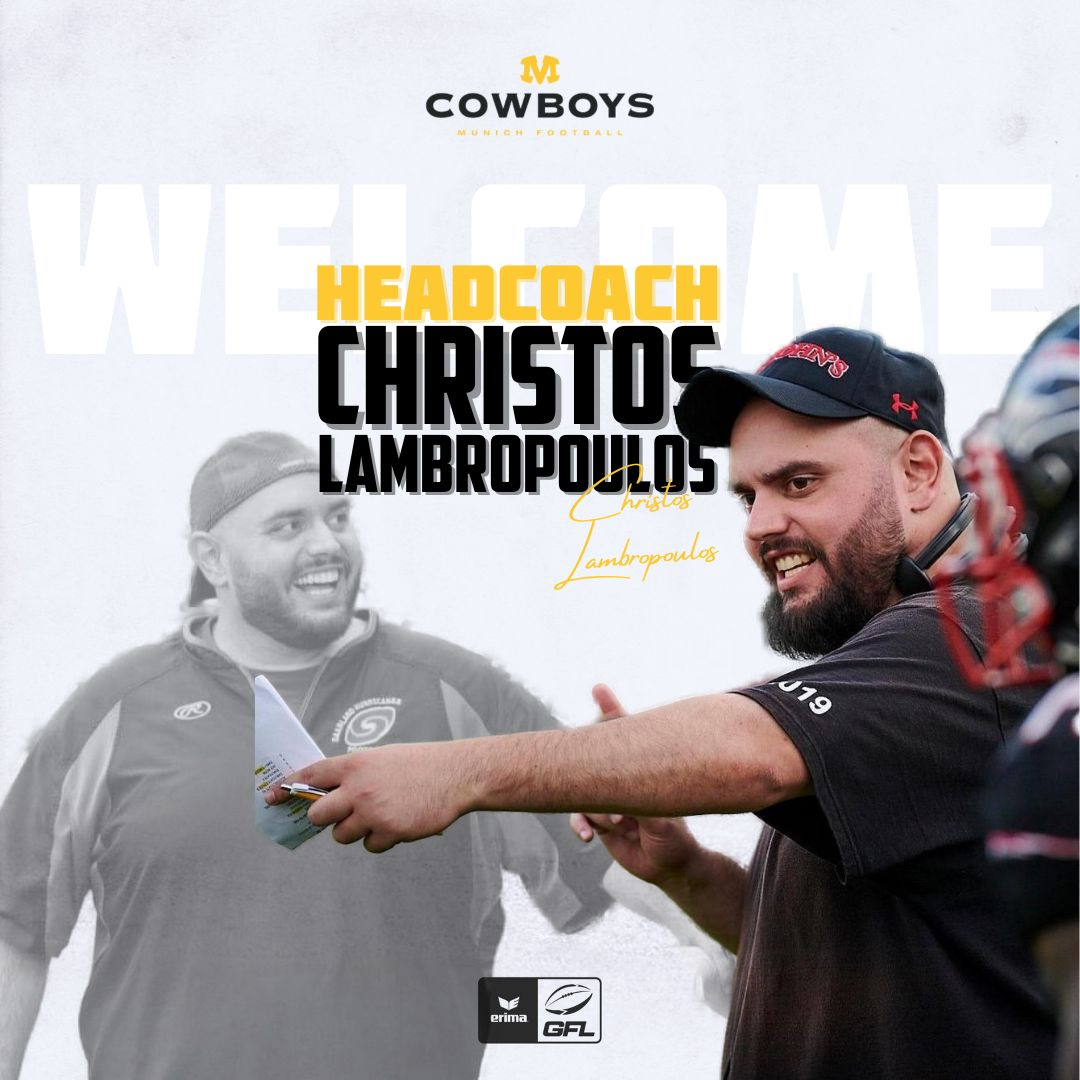 Die Munich Cowboys starten in die neue Saison mit Head Coach und Offensive Coordinator Christos Lambropoulos. Der 33-jährige Grieche mit australischem Pass gilt als absoluter Offensespezialist und hat bereits vor seiner Stippvisite bei den Cologne Centurions im Saarland bei den Hurricanes sehr erfolgreich als Head Coach gearbeitet.