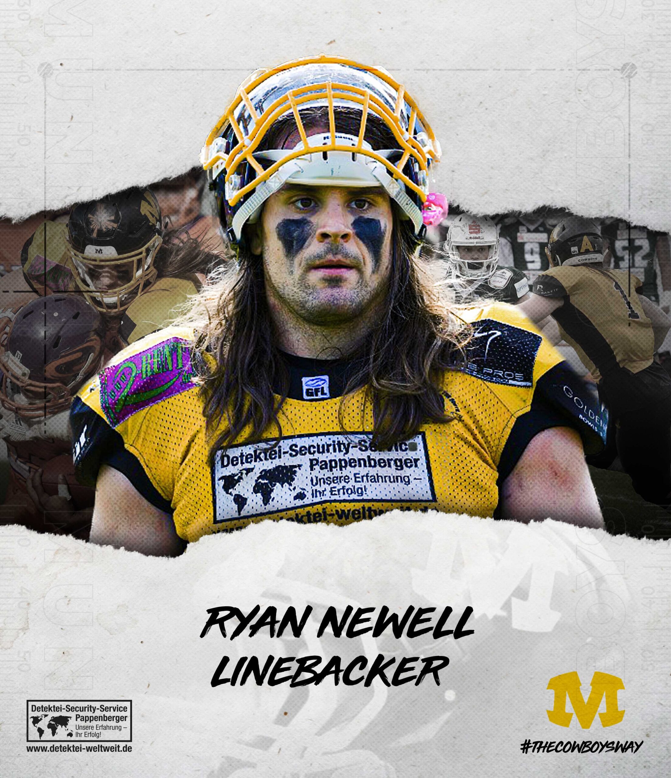 Seit seiner Rückkehr 2016 untesrtützt Ryan Newell die Munich Cowboys in verschiedenen Bereichen. Zuvor spielte der aus Nebraska stammende US-Amerikaner in Kiel und Hohenems. Bereits von 2012 bis 2014 war er der Führungsspieler in der Munich Cowboys Defense. 2010 gewann er mit den Iowa Blackhawks die AFPL Meisterschaft im Arena Football in den USA. Von 2006 bis 2009 war er am Peru State College ein Stützpfeiler des dortigen Footballteams.