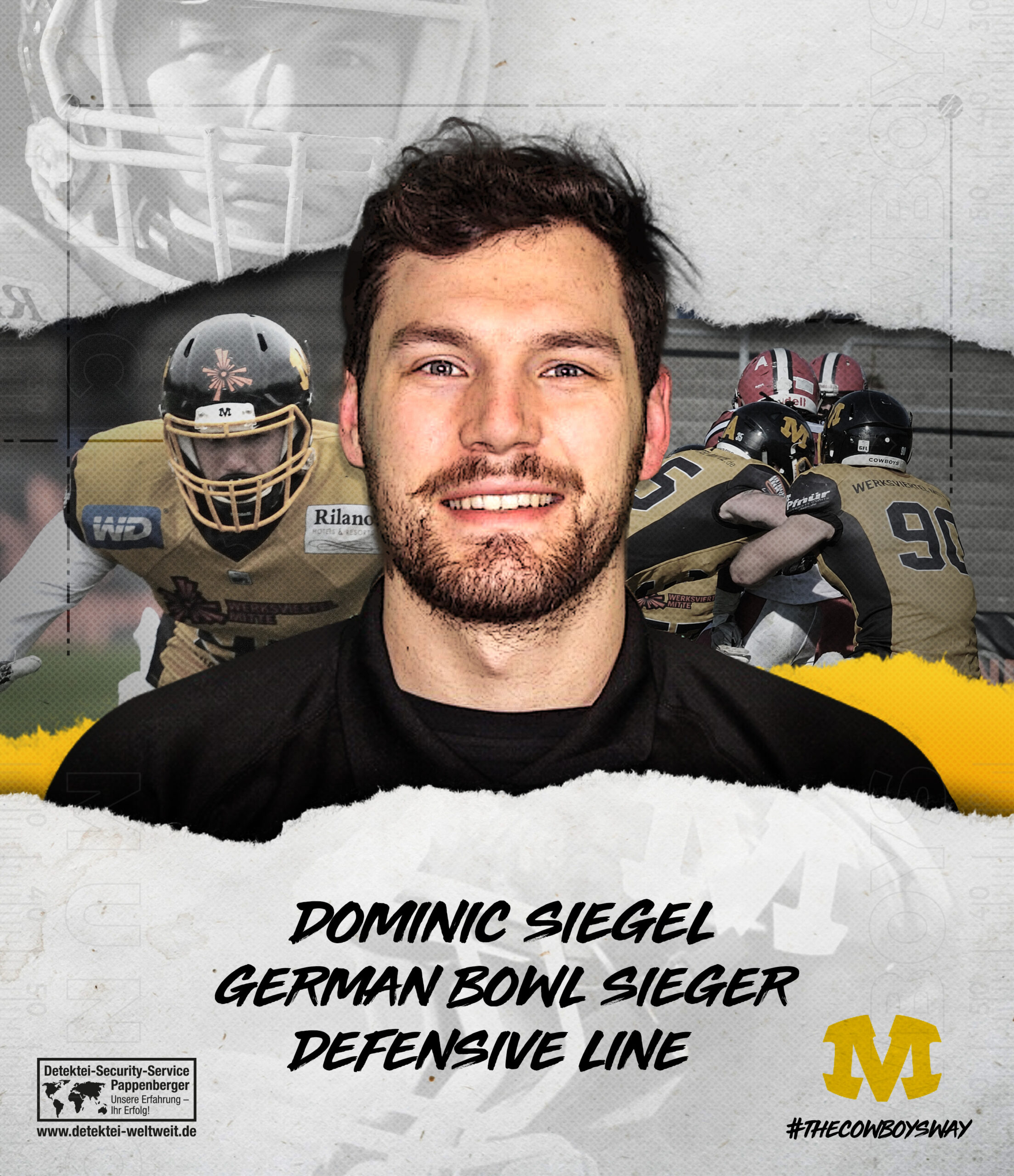Er ging in den Norden, um den Titel zu holen und es sollte auch auf Anhieb klappen. Jetzt ist er zurück – Defensive End Dominic Siegel wird 2020 das Jersey der Munich Cowboys tragen.