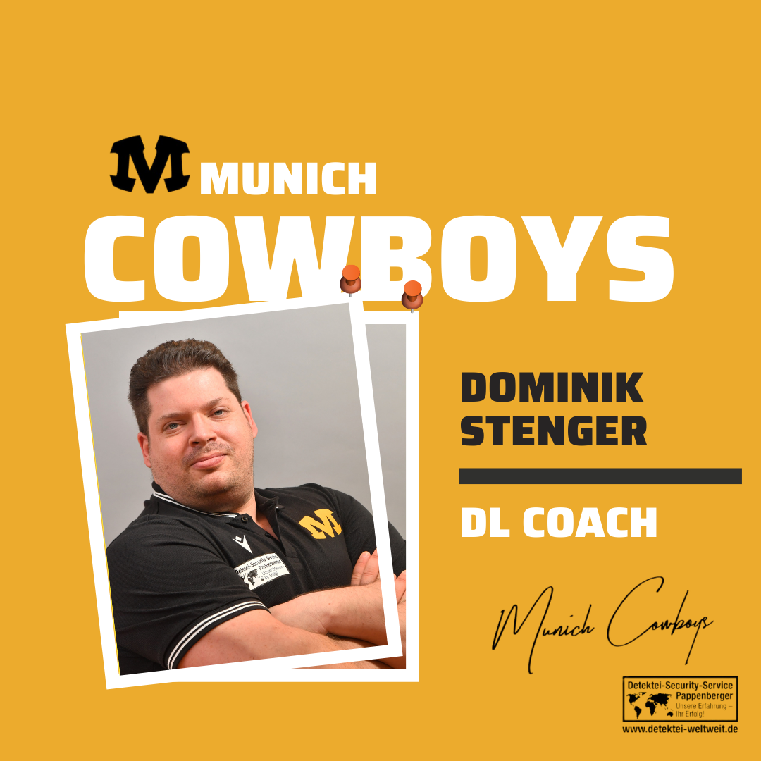 Dominik Stenger unser Coaching Eigengewächs, der schon als Spieler für die Munich Cowboys (2006 und 2015 bis 2019) aktiv gewesen ist, kümmert sich nun bereits im 3. Jahr im Defense Coaching Staff um die Defensive Line der beiden Herrenteams. Der inzwischen 38-jährige Dominik hatte sich nach Ende seiner aktiven Spielerzeit für das Team der Cowboys entschieden, um seine Trainerlaufbahn zu beginnen, da er hier neben dem professionellen Umfeld auch den freundlichen und familiären Umgang sehr schätzt. Head Coach Nadine Nurasyid über Dominik: „er engagiert sich mit vollem Herzblut und auf ihn ist immer Verlass. Auch in ihm spiegelt sich die Kontinuität in unserer Defense wider“.