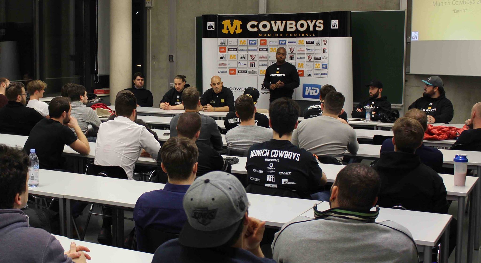 Der Start ist geglückt. Über 60 Interessierte folgten am Montag Abend den Ausführungen der Verantwortlichen zur neuen Saison bei den Munich Cowboys. Präsident Werner L. Maier ließ es sich nicht nehmen, alle Anwesenden herzlich zu begrüßen und einige Worte zu den personellen und strukturellen Veränderungen zu sagen.