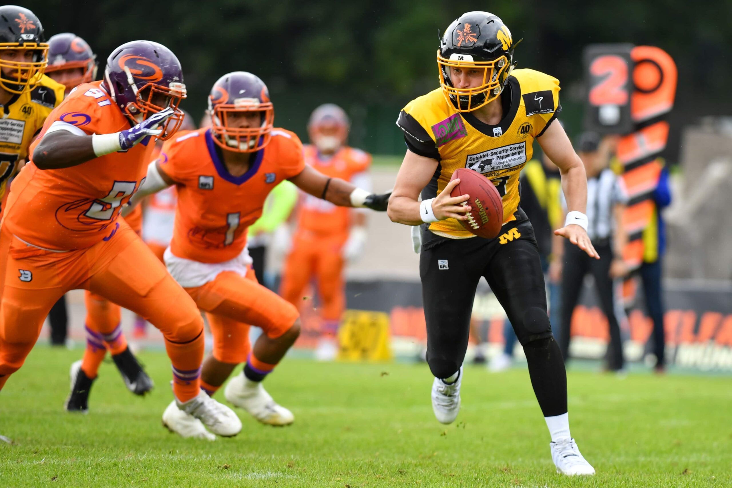Die Münchner Offense wurde nach dem Fingerbruch des etatmäßigen Quarterbacks Brady Bolles von Jari Koperski geführt und konnte aufgrund von Umstellungen und einiger weiterer Ausfälle über das gesamte Spiel hinweg nicht den gewohnten Druck auf den Gegner aufbauen.
