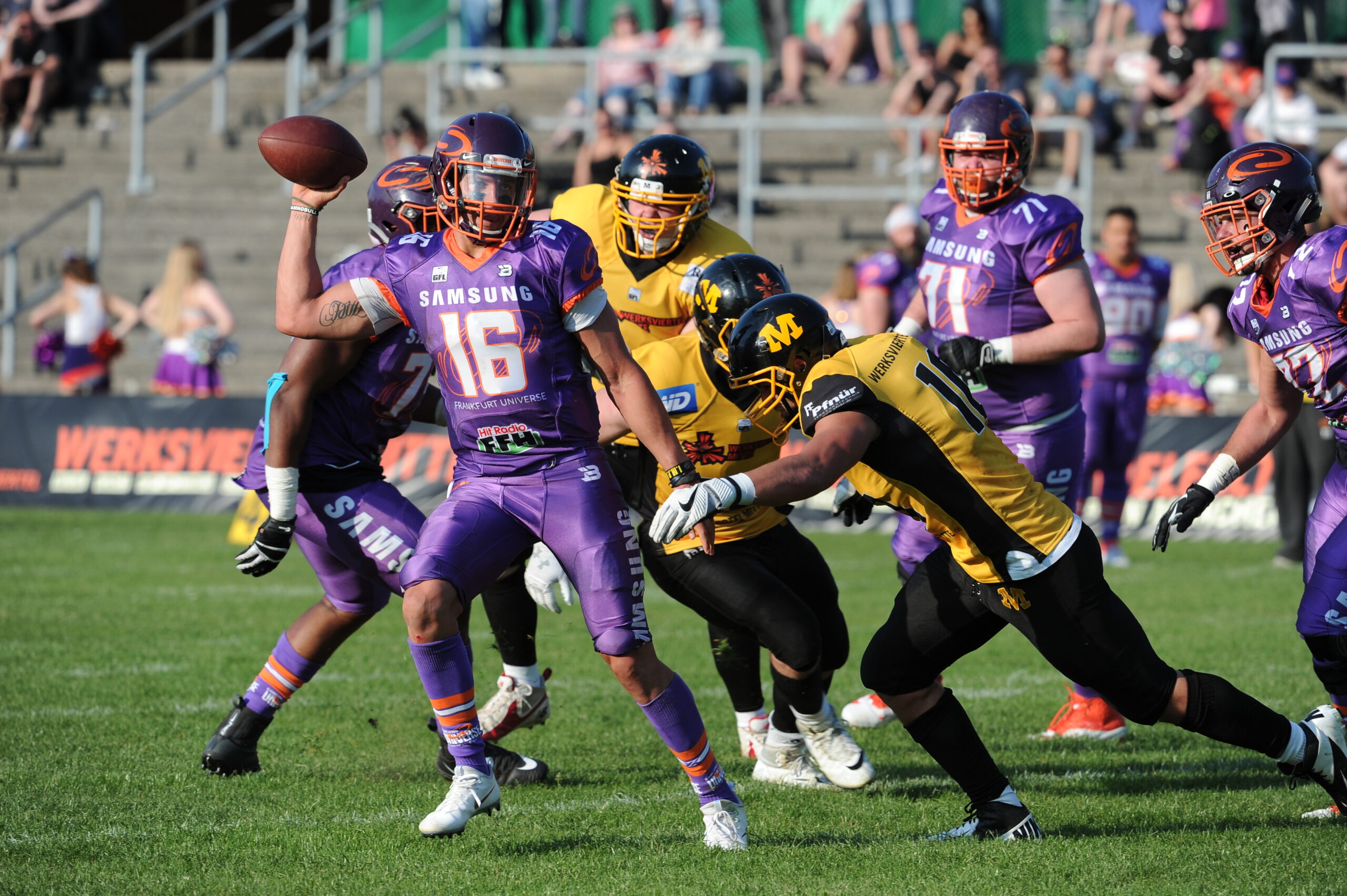 Es war der schwierigste Start in die GFL Saison, den man haben konnte. Frankfurt zuhause, dann auswärts beim Deutschen Meister in Schwäbisch Hall. Es war den Verantwortlichen durchaus klar, dass dies sehr schwere Spiele werden und ein Sieg nur in Bestform und mit einer gehörigen Portion Glück möglich sein würde. So taten sich die Spieler von Head Coach Garren Holley auch schwer, zeigten dennoch in beiden Partien zumindest defensiv ansprechende Leistungen. Die Offensive braucht noch einiges Feintuning, ließ aber dennoch in der ein oder anderen Situation schon erahnen, dass sich der Angriff positiv entwickelt und weiter punkten will.