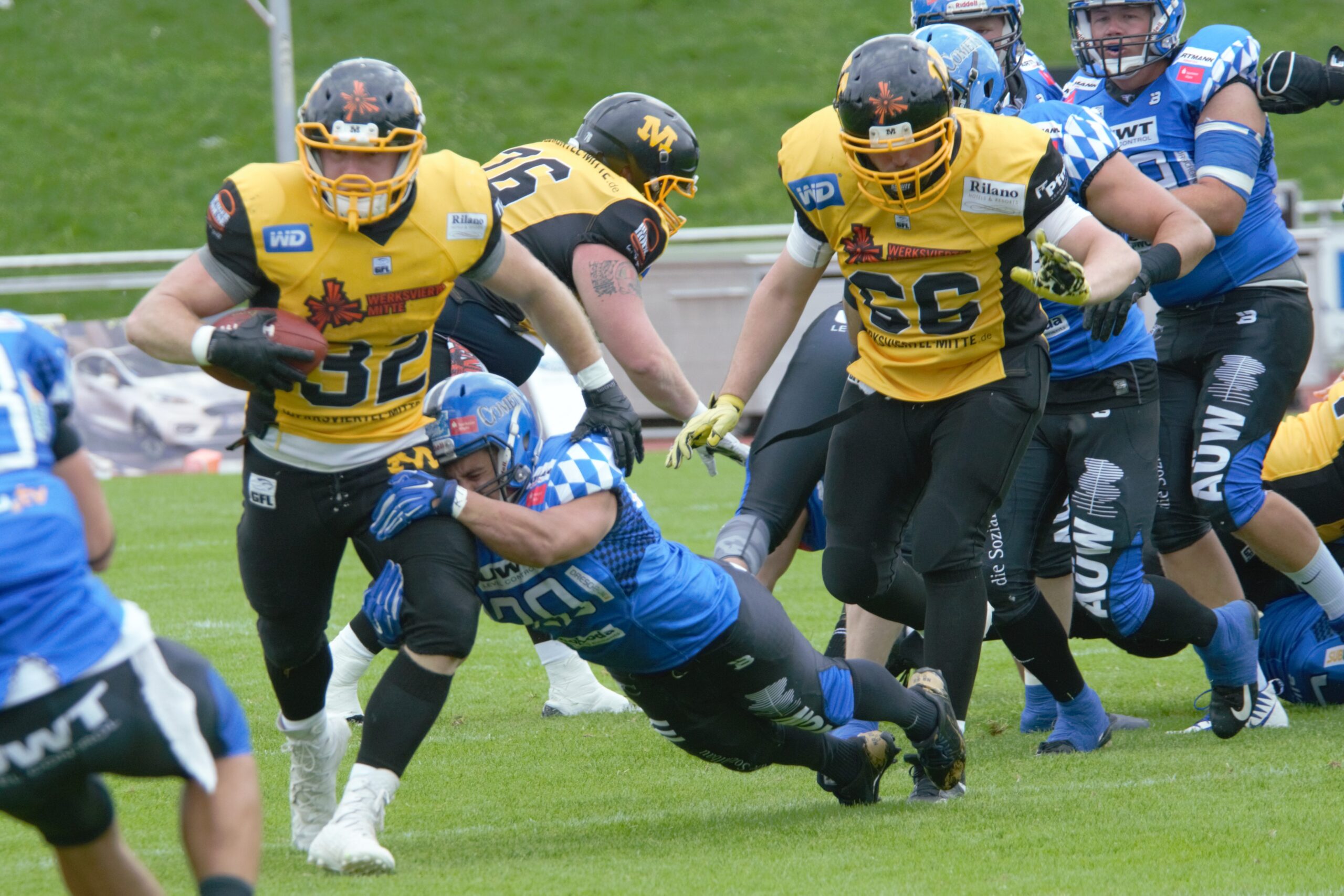 Es war eine Achterbahnfahrt für die 1819 Zuschauer, unter ihnen US Generalkonsulin Meghan Gregonis. Nach hartem Kampf mussten sich die Munich Cowboys im heimischen Dantestadion den Allgäu Comets am Ende etwas zu deutlich mit 24:34 geschlagen geben. Dabei begannen die Münchner, wo sie in den letzten drei siegreichen Begegnungen aufgehört hatten und zeigten sich vor allem im Angriff variabel und fokussiert.
