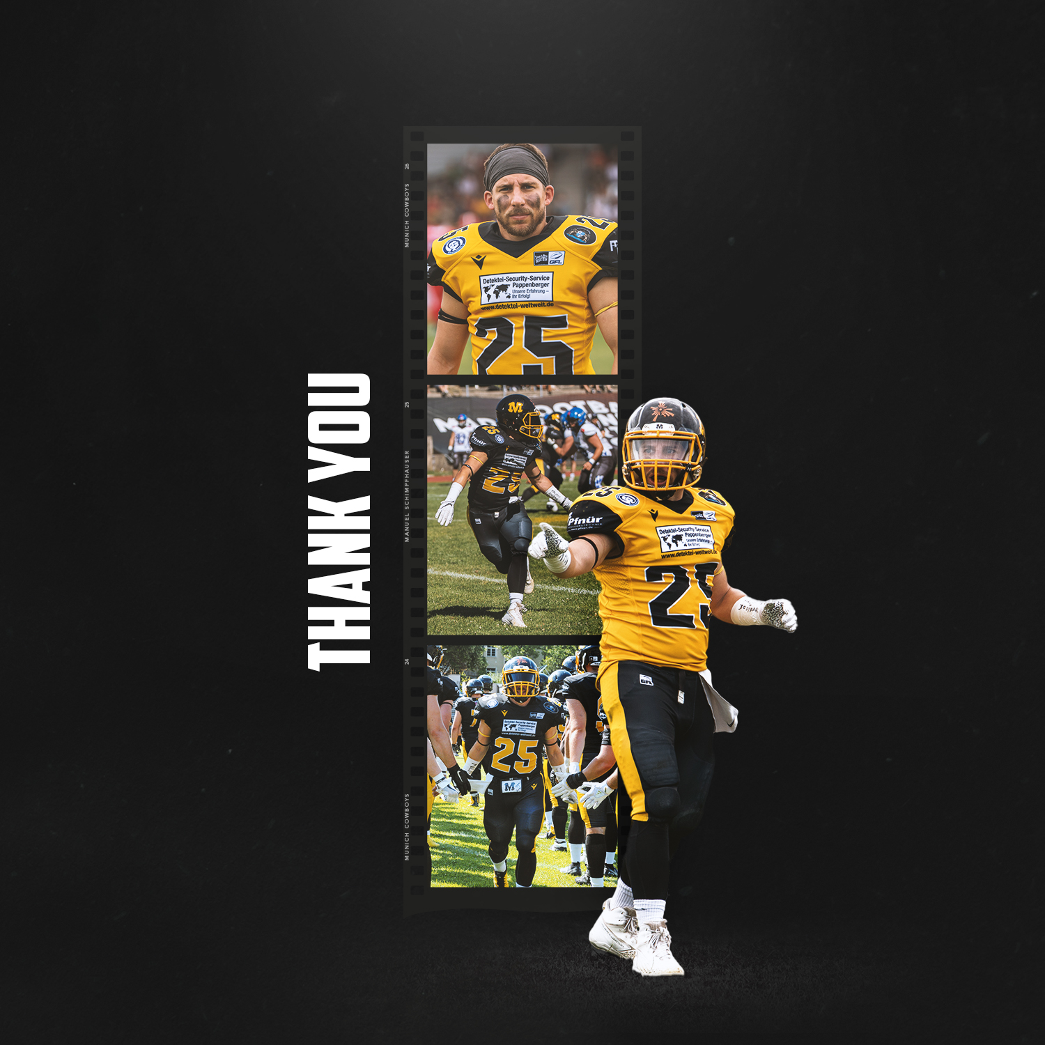 Die Munich Cowboys bedanken sich bei Manuel Schimpfhauser, der sich sowohl sportlich als auch menschlich als Vorbild und echter Cowboy präsentiert hat. Herzlichen Dank für Deine Leistungen und Deinen Einsatz!