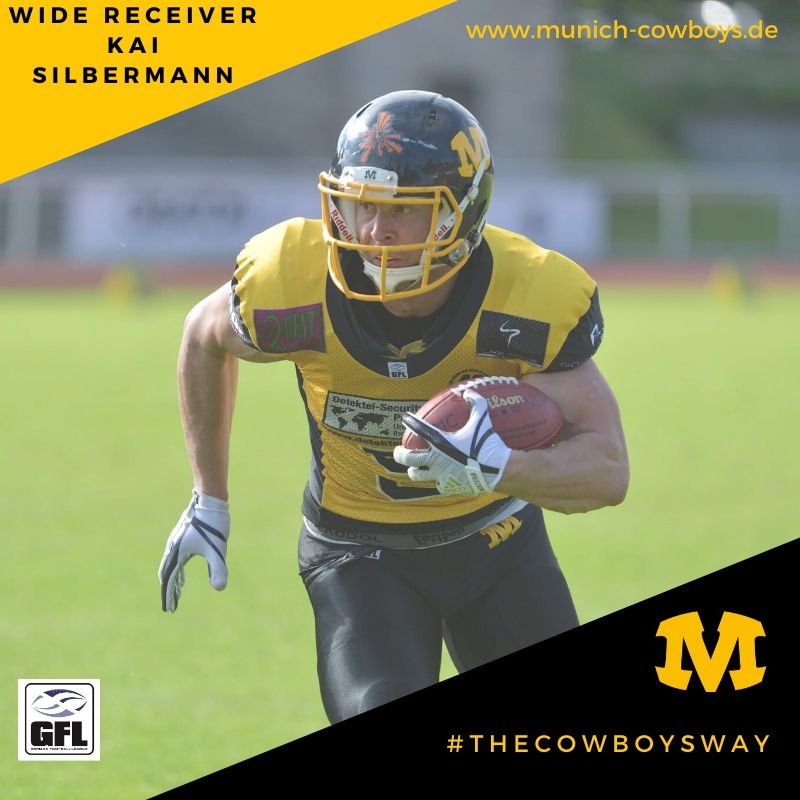 Der beste deutsche Wide Receiver der Munich Cowboys aus 2018 und 2019 Kai Silbermann wird auch 2020 das Jersey der Munich Cowboys tragen. Mit seiner Konstanz und Athletik ist er seit Jahren ein Vorbild im Angriff der Munich Cowboys.