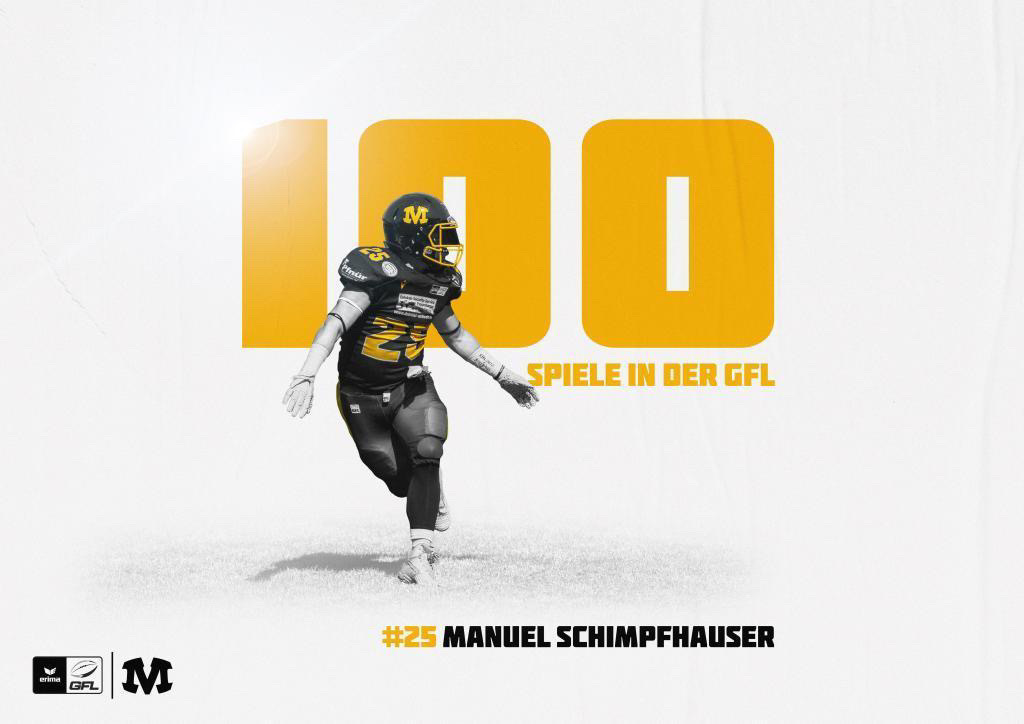 Mit dem Sieg am vergangenen Sonntag gegen die Saarland Hurricanes sprangen die Munich Cowboys auf den zweiten Tabellenplatz in der ERIMA GFL Gruppe Süd. Für Manuel Schimpfhauser gab es neben diesem Erfolg noch einen weiteren Grund zum Feiern, denn er bestritt sein 100. GFL Spiel!