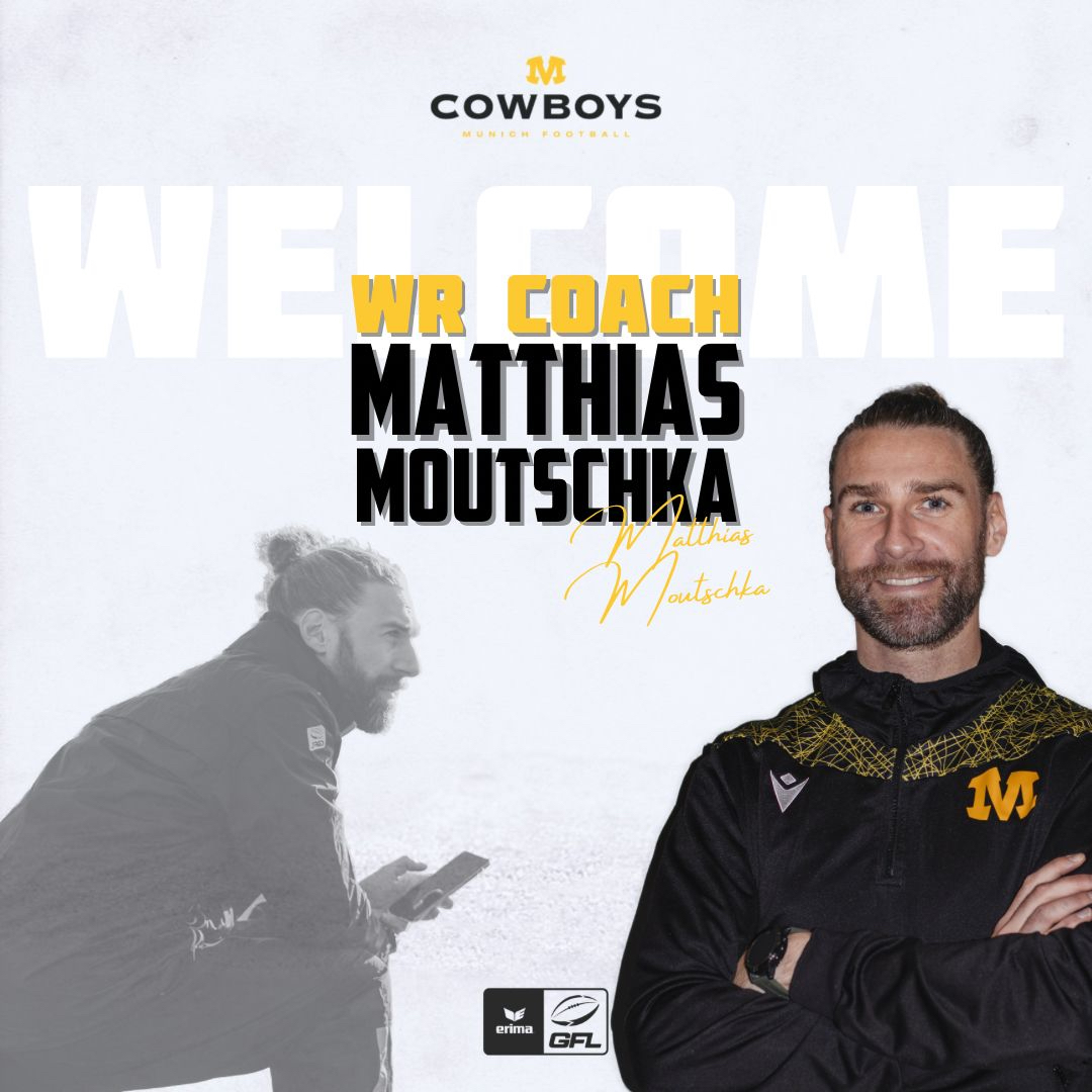 Die Offense der Munich Cowboys kann 2024 bei den Passempfängern auf Wide Receiver Coach Matthias Moutschka bauen. Der 36-jährige Offensivspezialist begann 2006 mit American Football als Wide Receiver der Aschaffenburg Stallions. Nach einer Zwischenstation beim Remscheid Amboss kehrte er zu den Aschaffenburgern zurück und stand bis 2019 für die Stallions als Spieler auf dem Feld.