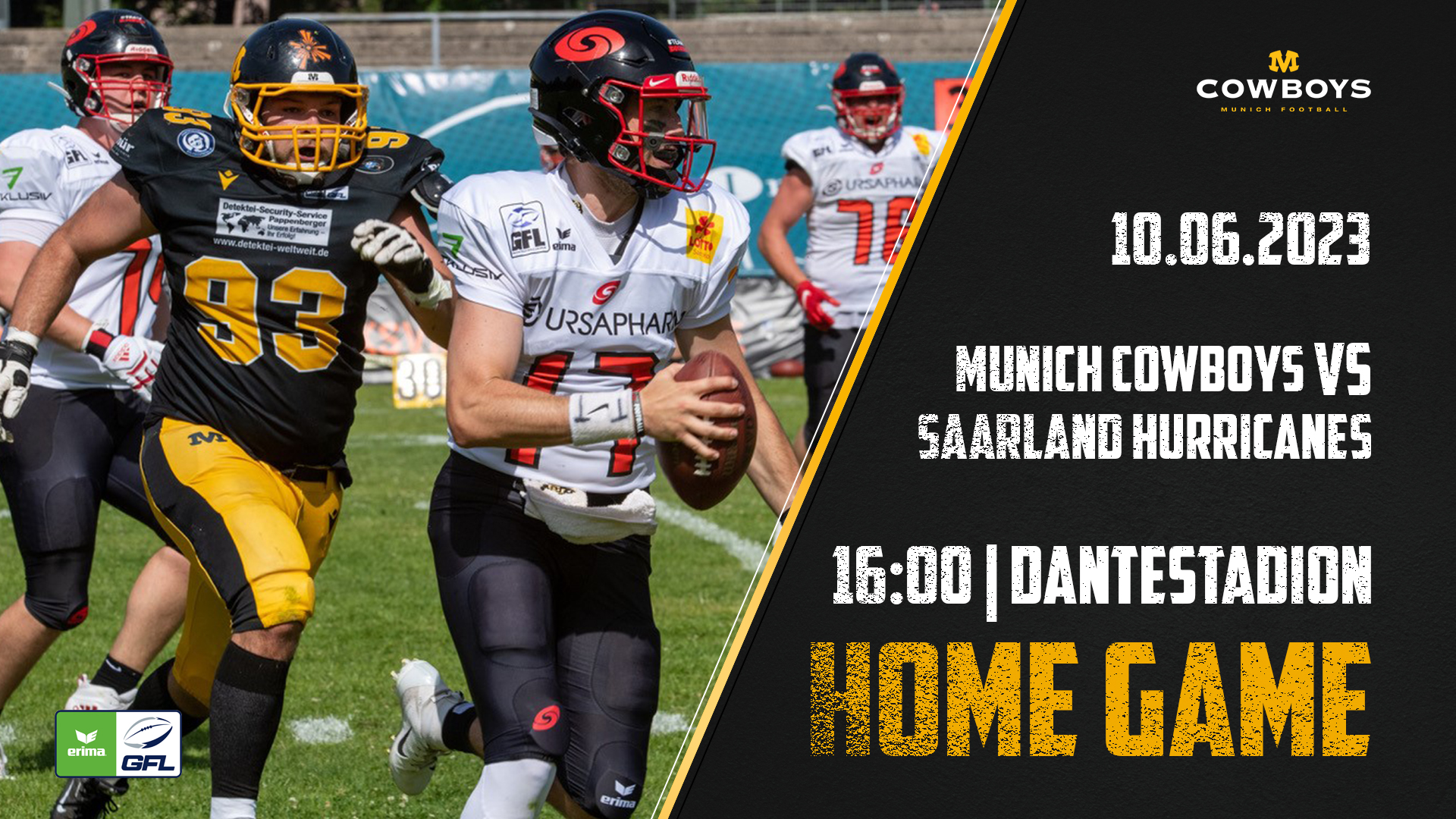 Am kommenden Samstag empfangen die Munich Cowboys zu ihrem ersten Heimspiel 2023 in der ERIMA German Football League die Saarland Hurricanes.