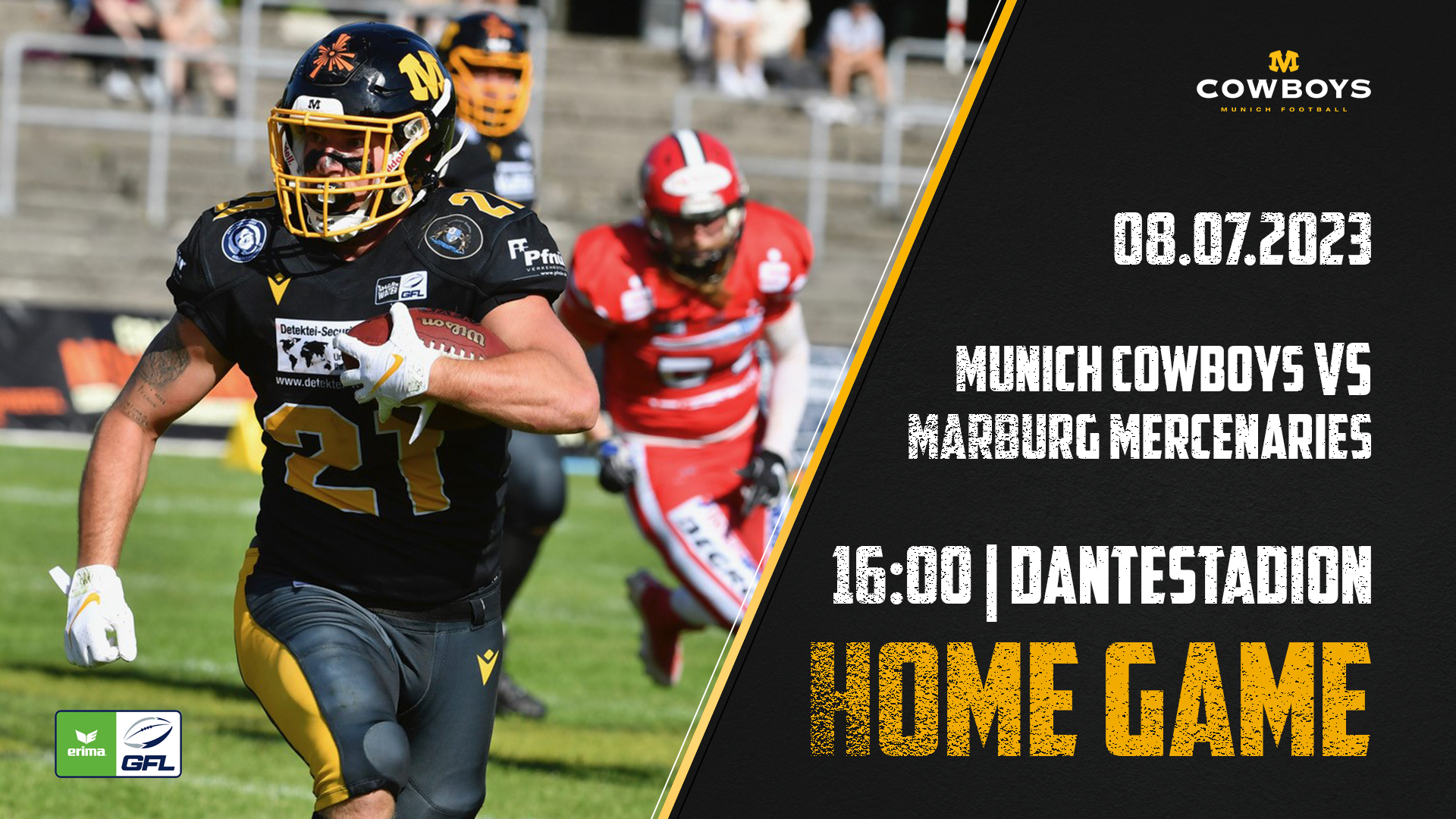 Die Munich Cowboys hoffen darauf, dass das Verletzungspech nicht weiter zuschlägt. Mit den Schlüsselspielern am Start werden sie aber alles daran setzen, die Punkte in München zu halten. Wichtig wird auch die Unterstützung durch die Fans sein. Mit vollem Einsatz auf dem Feld und guter Stimmung von den Rängen kann dieses spannende Duell einen positiven Ausgang finden. Kickoff ist um 16:00 Uhr, Einlass bereits ab 15:00 Uhr. Spannung, Action und viel Unterhaltung sind garantiert bei den Munich Cowboys im Dante!