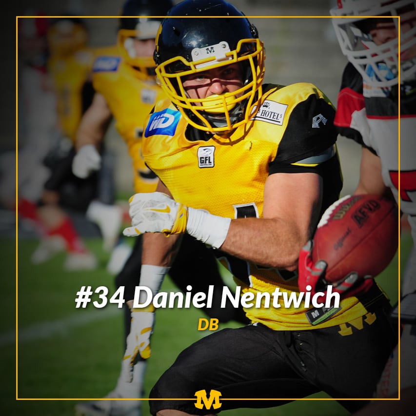 Mit Daniel Nentwich werden die Munich Cowboys auch 2017 einen erfahrenen Leistungsträger in der Defense dabei haben. Dabei kann der wendige Defensive Back auf seine Spielübersicht und athletischen Fähigkeiten vertrauen.