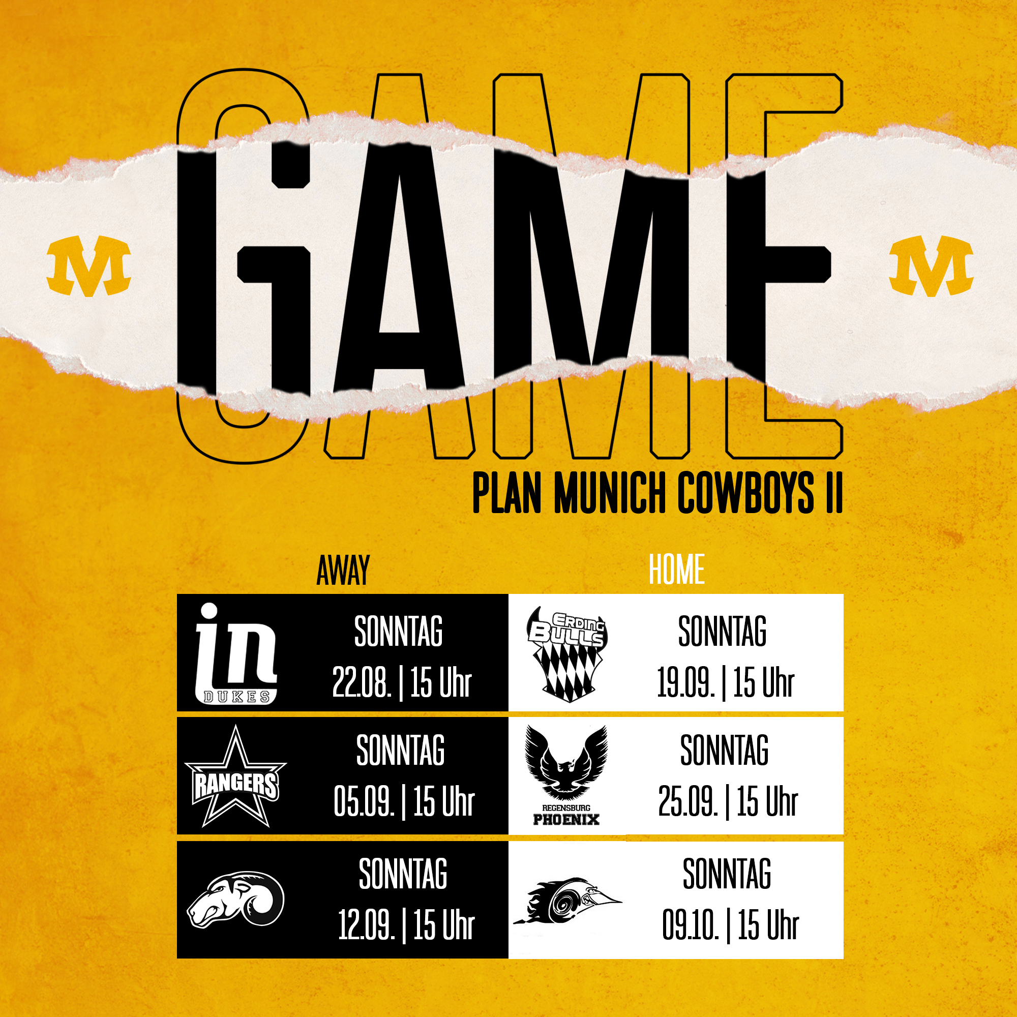 Die Spiele der Munich Cowboys II in der Regionalliga Saison 2021 sind im Spielplan zusammengefasst.