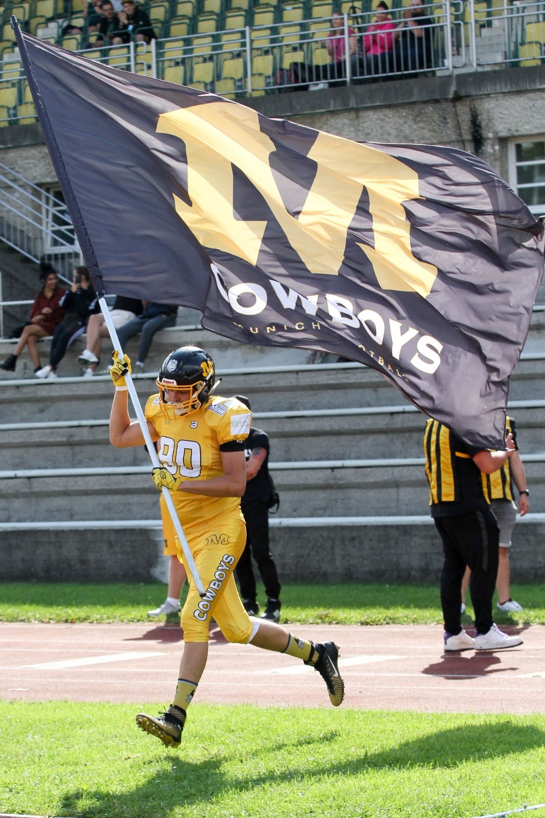 Bei den Munich Cowboys war die Freude auf das erste Heimspiel der Saison von Beginn an spürbar. So legten die Gastgeber los wie die Feuerwehr und gingen im ersten Quarter durch zwei Touchdowns von Julian Frey und Marvin Lautermann mit 13:0 in Führung. Quarterback Lennart Wimmer passte jeweils präzise auf seine Mitspieler.