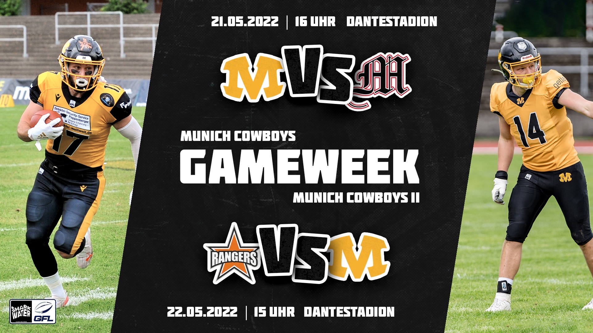 Am Samstag, den 21.5.2022 starten die Munich Cowboys um 16:00 Uhr im heimischen Dantestadion gegen die Marburg Mercenaries in die Saison 2022 der SharkWater GFL. Das Team von Head Coach Nadine Nurasyid hat sich intensiv vorbereitet und es wird neben vielen Leistungsträgern aus der letzten Saison auch zahlreiche neue Gesichter im Kader geben, die alle heiß darauf sind, endlich ihr Können zu zeigen. Einlass in das Stadion erfolgt ab 15:00 Uhr. Außerhalb des Feldes sorgen der Moderator Markus Gaupp und die Beats von DJ Johann Anderer wieder für beste Stimmung.
