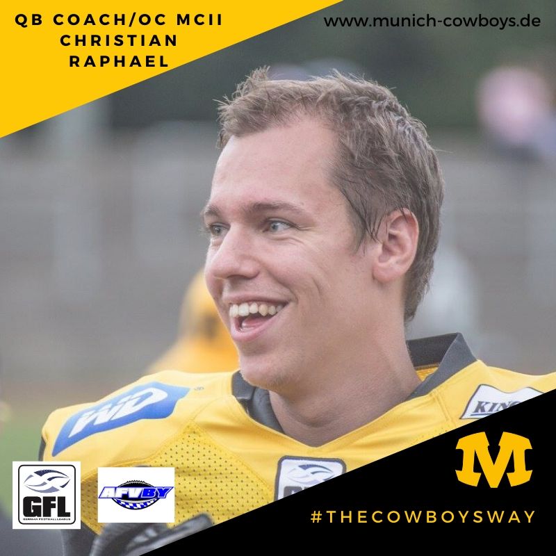 Der Coaching Staff der Herren bekommt weitere Unterstützung für den Angriff. Mit Christian „Streifi“ Raphael wird sich 2020 ein ausgewiesener Offense-Spezialist als Quarterback Coach und Offensive Coordinator der MCII einbringen.